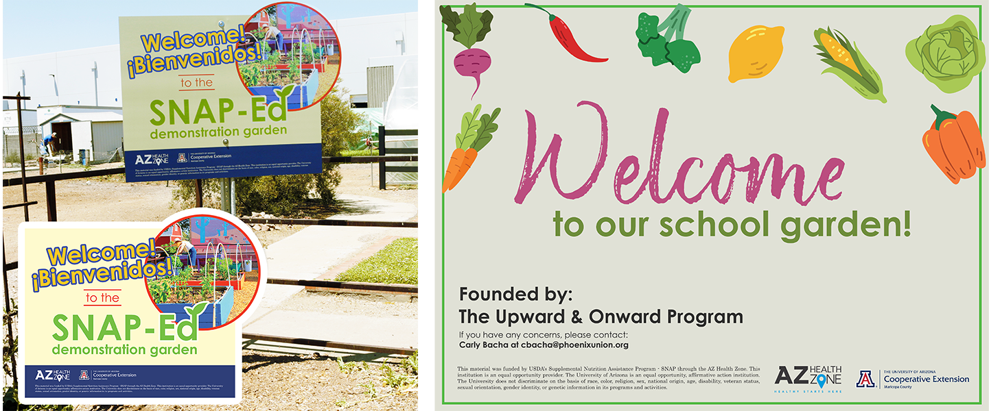 (L) SNAP-Ed Demo Garden Signage; (R) School Garden Signage